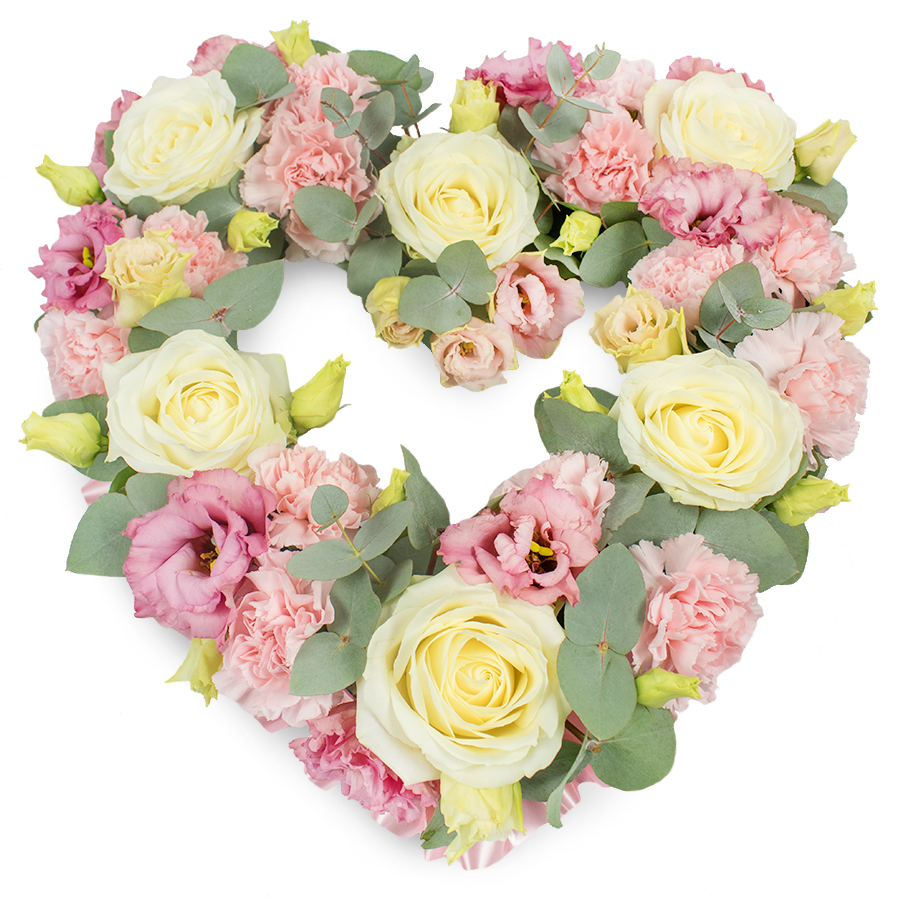 Experience the art of remembrance with our luxurious tribute bouquet. Designed with care, this arrangement combines the pristine elegance of white roses, delicate pink carnations, soft pink lisianthus, and lively eucalyptus leaves. Every stanza of this floral composition is hand-picked to guarantee supreme freshness and vibrant color.